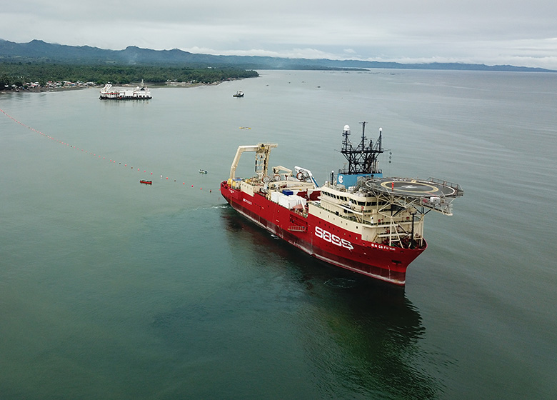DP-2 vessel, specializing in submarine cable installation and maintenance. Equipped with Q1000 trenching ROV onboard.