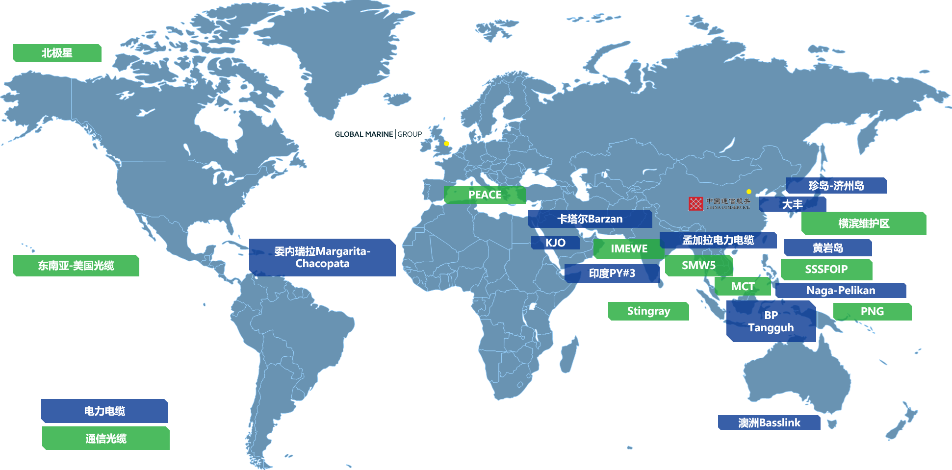 自中英海底成立以来,我们已在通信、电力、石油与天然气和可再生能源领域参与超过120个项目。